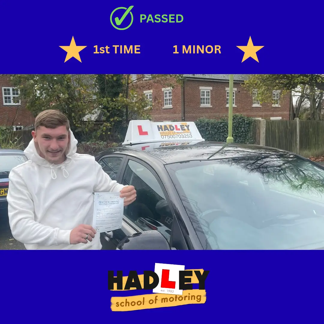 Passed first time with Jack over the moon would definitely recommend Hadley school of motoring 👍
