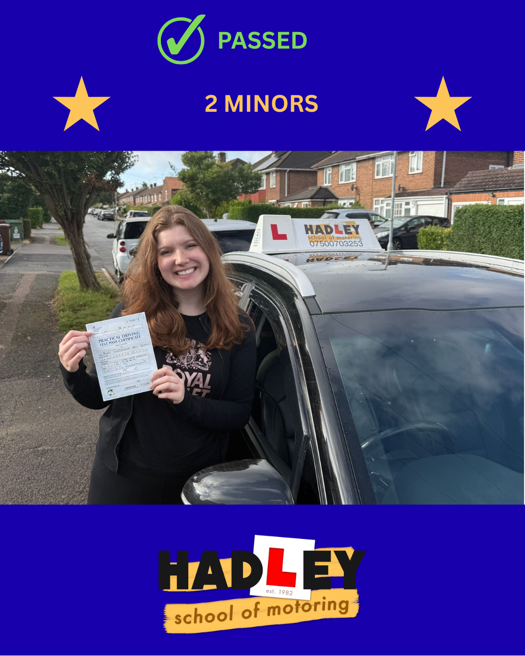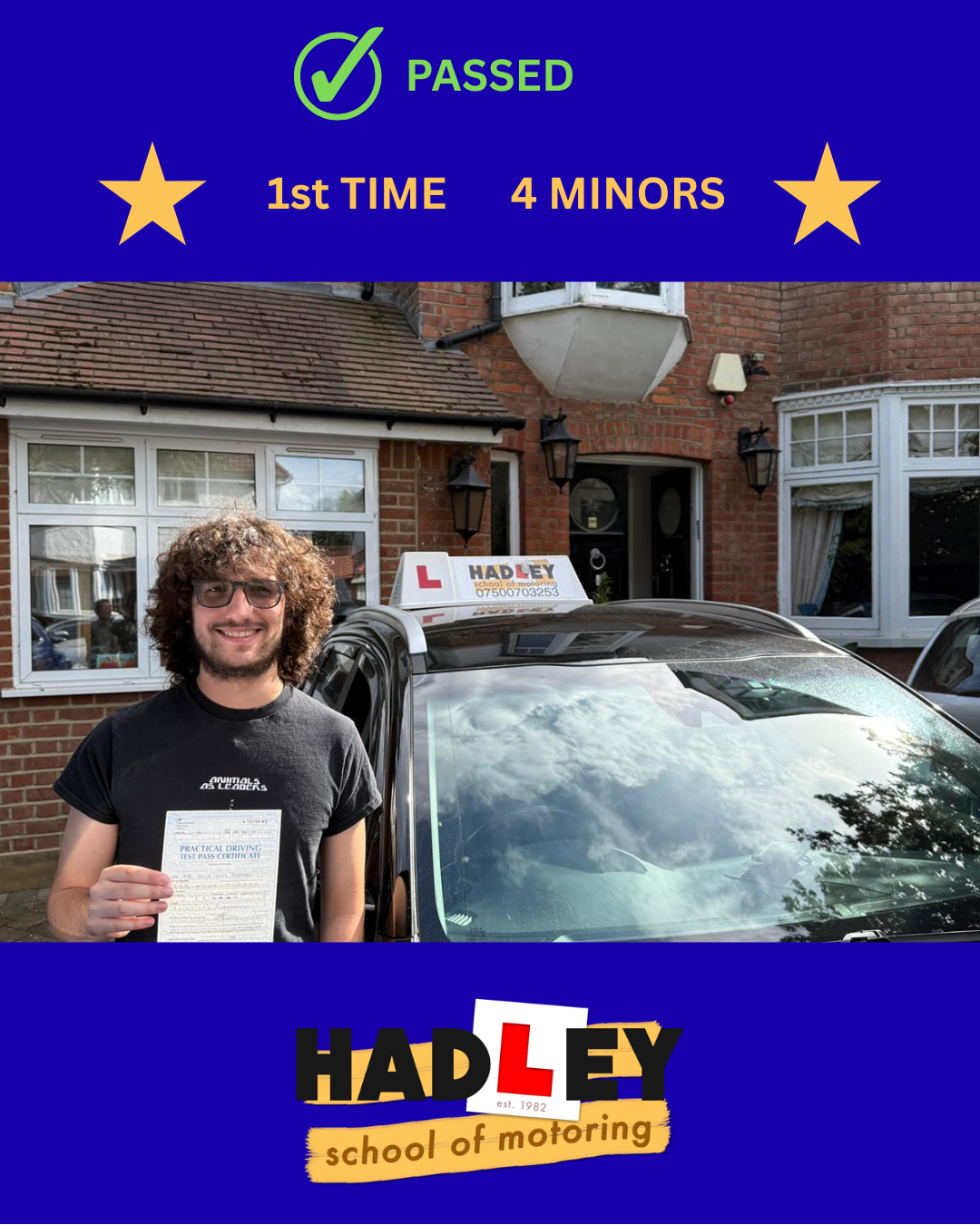 Passed my test with HADLEY DRIVING SCHOOL in first attempt.