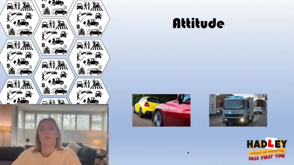 feature everyday road scenes and contain at least one ‘developing hazard’ – but one of the clips features 2 developing hazards!